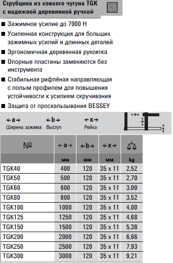 BE-TGK60 TGK60 Струбцина чугунная 600/120, 7 кН, деревянная ручка, для высоких нагрузок 13600р.