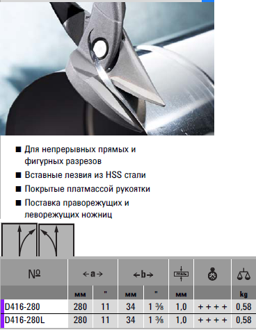 Эти ножницы с полным правом носят свое имя. Так как идеальные ножницы настоящие "универсалы". Их можно использовать для непрерывной резки листового металла (непрерывный разрез), а также резки больших и малых контуров или радиусов (фигурный разрез). При этом не имеет значения, выполняются ли работы с края (обрезка кромки) или посередине листа. Конечно же, идеальные ножницы можно использовать также для простейшей краевой вырубки.