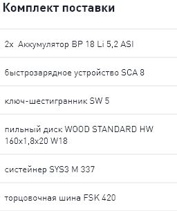 | Напряжение аккумулятора | 18 В |