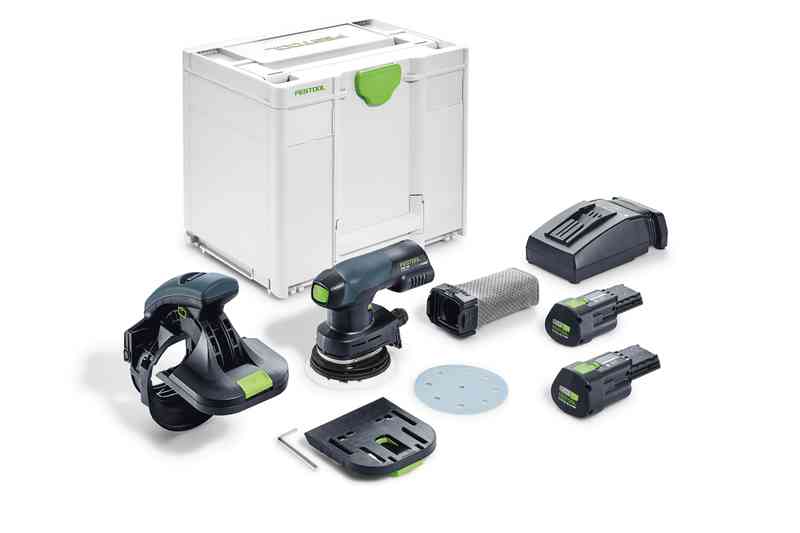 Опорное устройство AH-ES-ETS/ETSC, аккумулятор BP 18 Li 3,1 ERGO-I 2 шт., быстрозарядное устройство TCL 6, шлифовальная тарелка StickFix Ø 125 мм (мягкая, HT), мешок-пылесборник Longlife, ключ-шестигранник SW 5, в Systainer SYS3 M 337