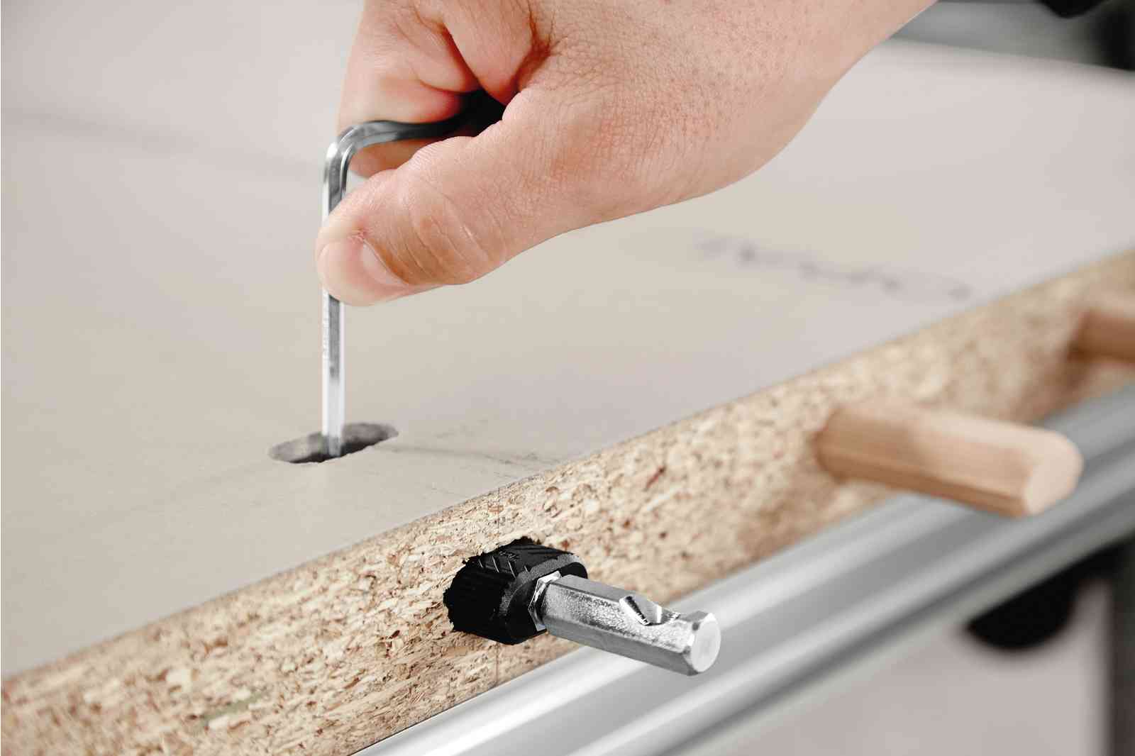 • Широкий ассортимент соединителей для работы с пазово-дюбельным фрезером DF 700 при изготовлении разборных мебельных конструкций, например, кроватей, столов, кухонных столешниц, а также для изготовления разборных панельных соединений в мебельном производстве, например для кухонных столешниц, скамеек и т. д.