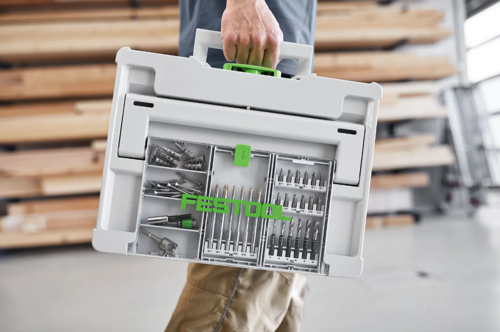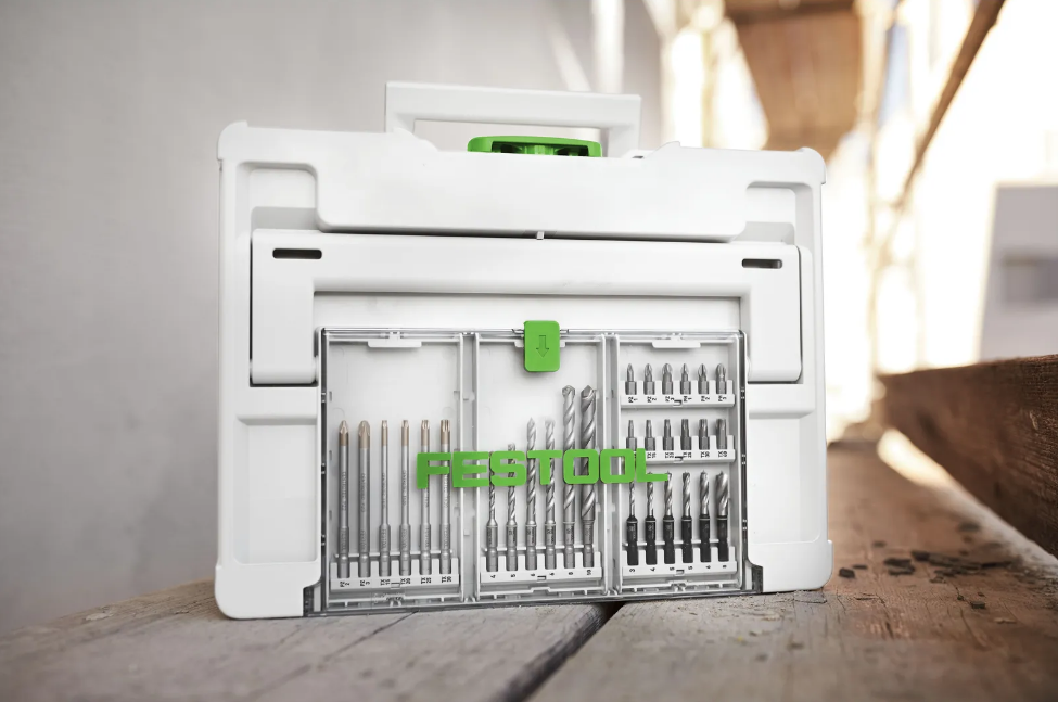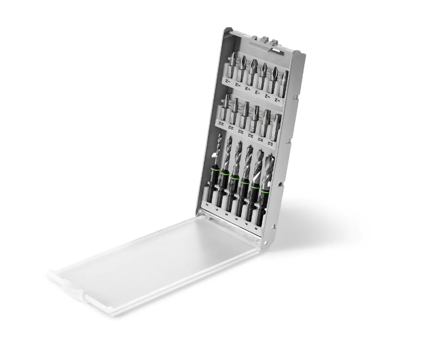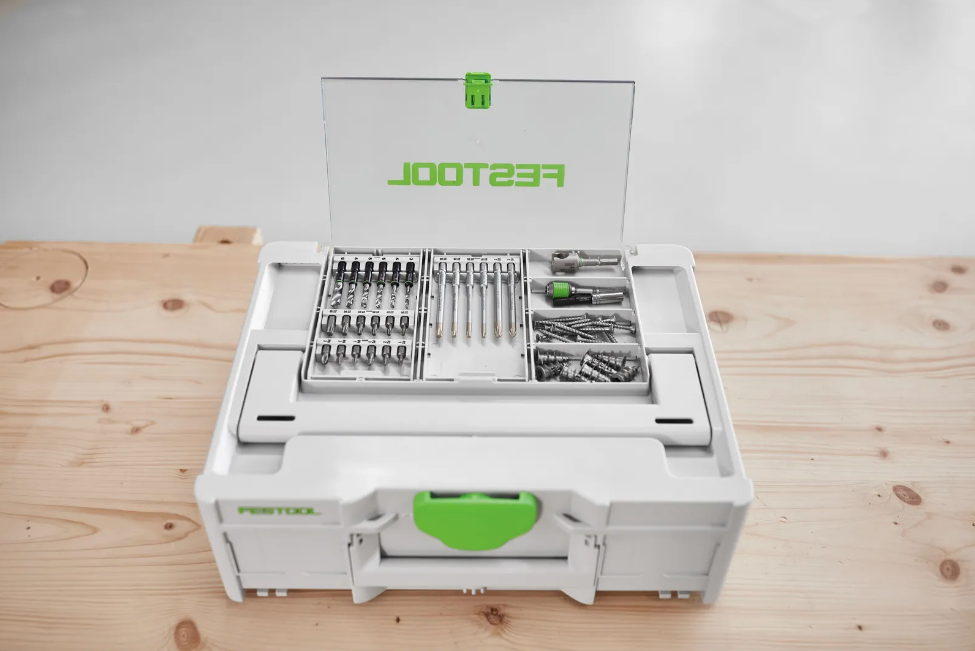 Двенадцать высококачественных бит и шесть коротких деревянных сверл всегда аккуратно хранятся в практичном кассетном отсеке в крышке. Кассету можно использовать как в контейнере Systainer в крышке, так и отдельно. Благодаря встроенным магнитам сверла надежно удерживаются, что обеспечивает удобное извлечение и хранение. Сверла можно непосредственно вставлять в патрон инструмента CENTROTEC и фиксировать. Короткая длина сверла облегчает работу при сверлении, например, для сверления отверстий в панельных материалах или в узких пространствах.