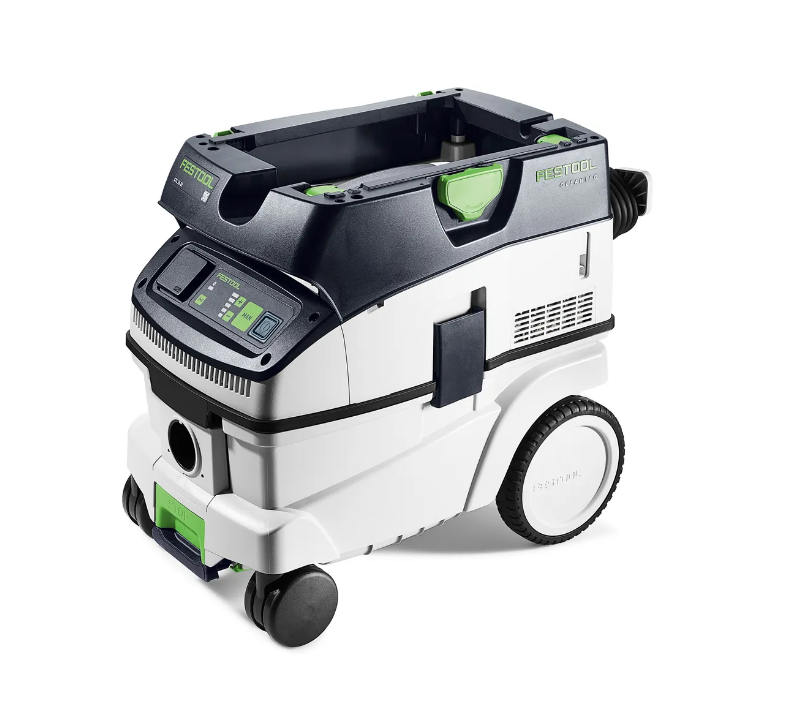 CLEANTEC CTL 26 EI предлагает большой объем контейнера 26 л в сочетании с компактными размерами. Он оснащен сенсорной панелью для интуитивно понятного управления пылесосом. Встроенный интерфейс Bluetooth® позволяет запускать пылеудаляющий аппарат с помощью беспроводного инструмента Festool или автоматически с помощью дополнительного пульта дистанционного управления. Гладкий антистатический всасывающий шланг удобно хранится во внутреннем отсеке. Система T-LOC позволяет быстро подсоединять контейнеры Systainer, сепараторы или рабочие центры. Это означает, что данный пылеудаляющий аппарат становится центральным элементом системы.