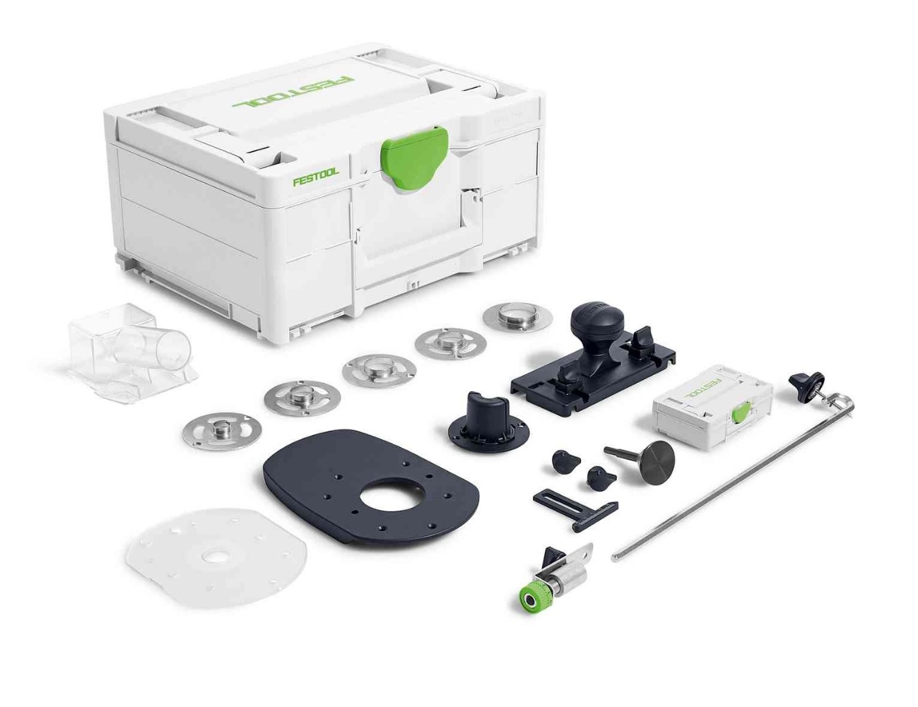 В практичном Systainer3 вы найдете множество вспомогательных инструментов для вашей работы: адаптеры направляющих линеек, копировальные кольца, основания и многое другое. Все аккуратно организовано и всегда под рукой. Ваши фрезы также оптимально защищены в дополнительных отсеках.