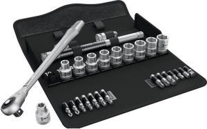 1 трещотка Zyklop Metal, сдвижной квадрат, привод 1/2", 10 головок Zyklop, 1 удлинитель Zyklop (длинный) с муфтой быстрого вращения, 1 качающийся удлинитель, 1 держатель с быстрозажимным патроном, 14 битов
