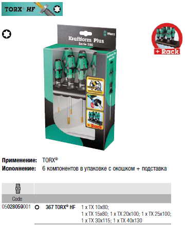 TORX® HF Kraftform Plus Набор отверток с фиксирующей функцией подставка