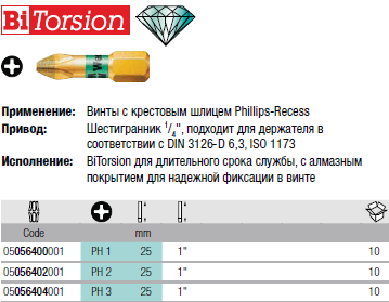Мельчайшие алмазные частицы на острие насадки практически "вгрызаются" в винт. B означает BiTorsion. DC означает Diamond Coated (алмазное покрытие).