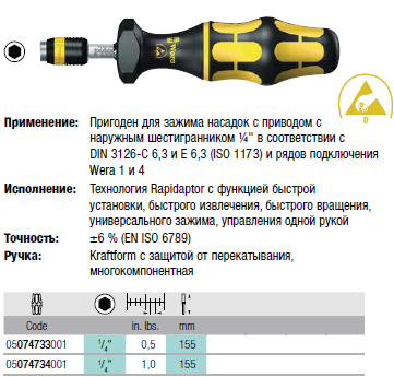 Kraftform ESD Регулируемая динамометрическая отвертка с быстрозажимным патроном Rapidaptor
