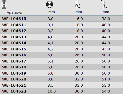 Привод:внутренний шестигранник 1/4", подходит для держателей с зажимом в соответствии с DIN 3126-D 6,3, ISO 1173